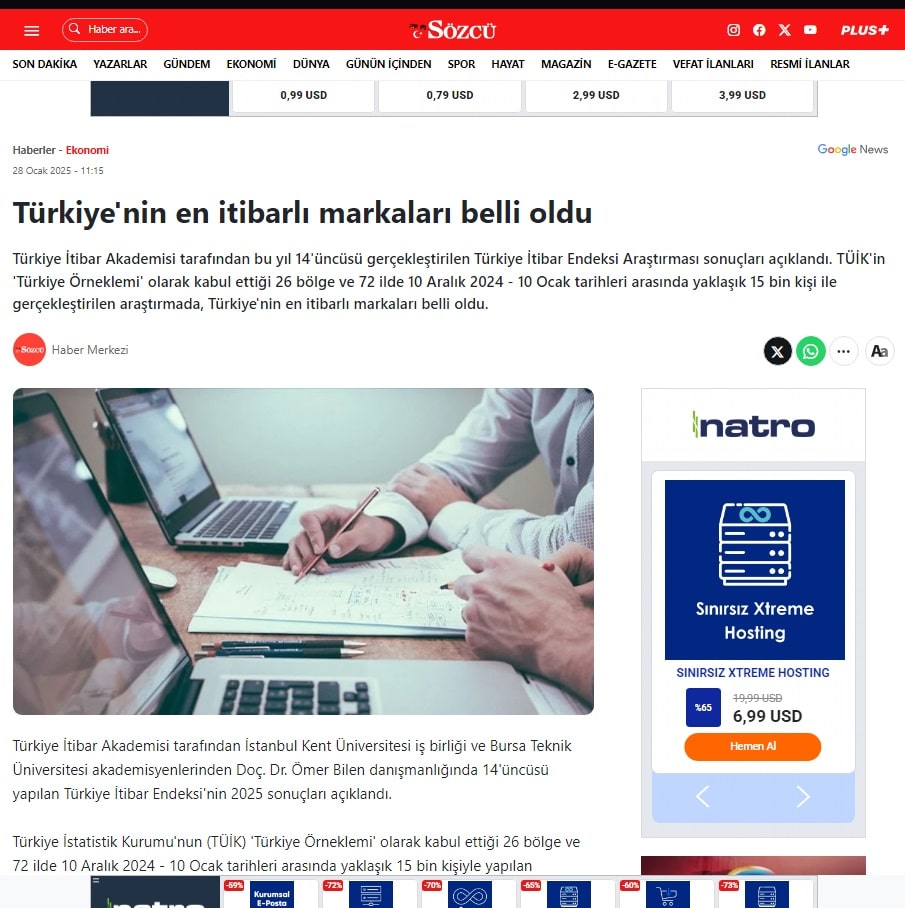 Türkiye'nin en itibarlı markaları belli oldu