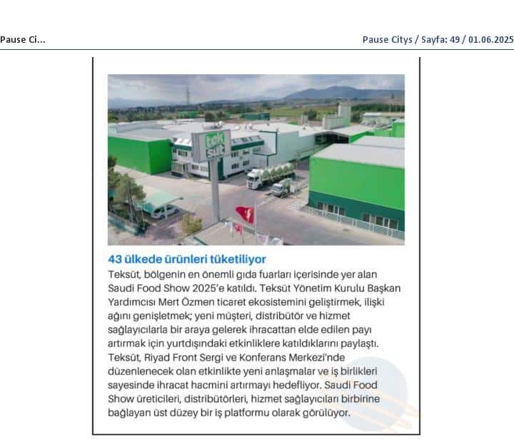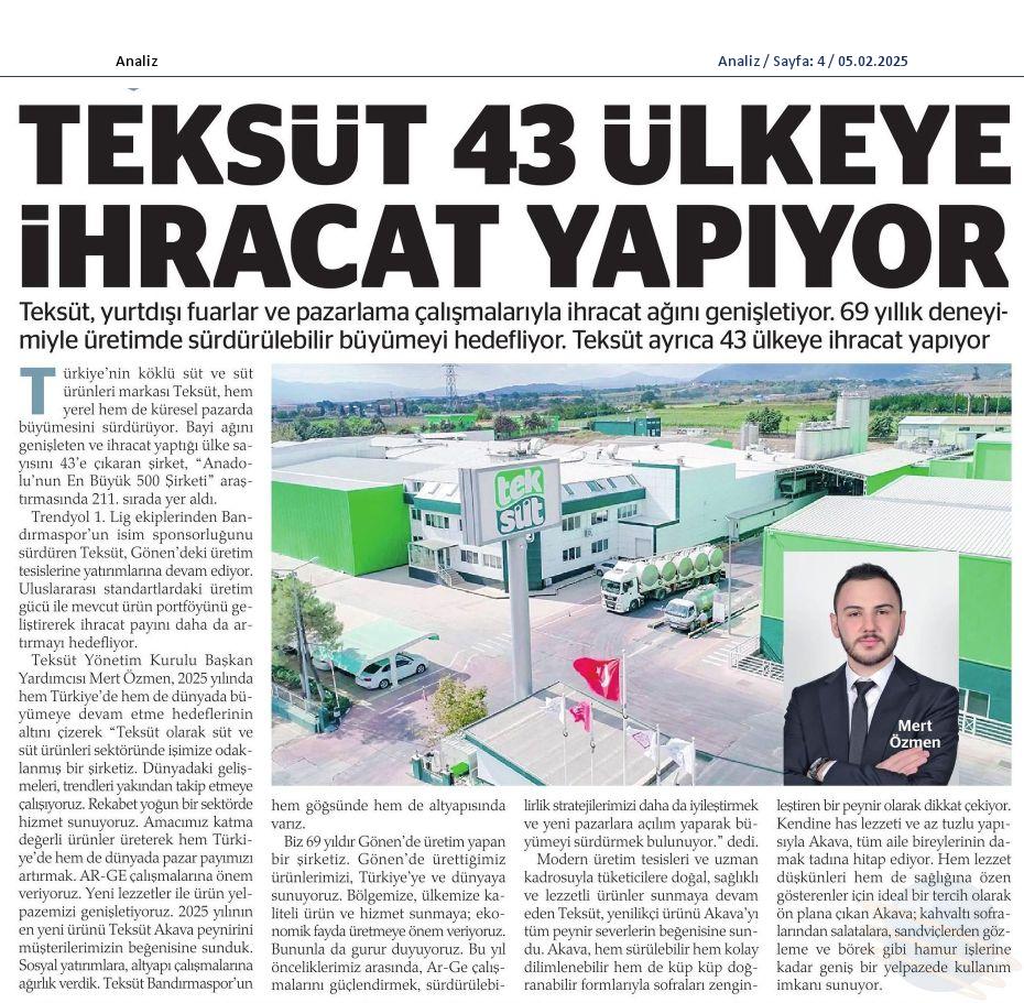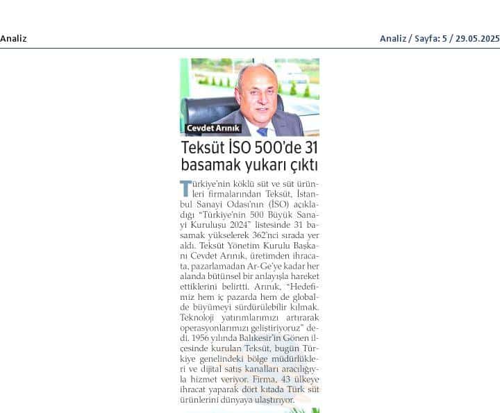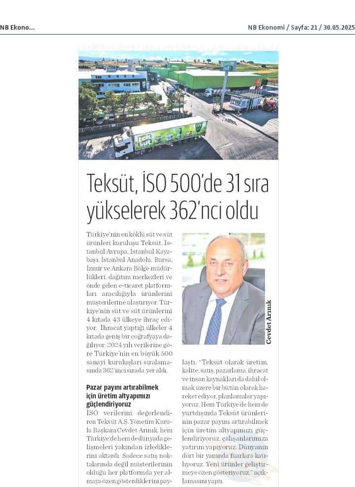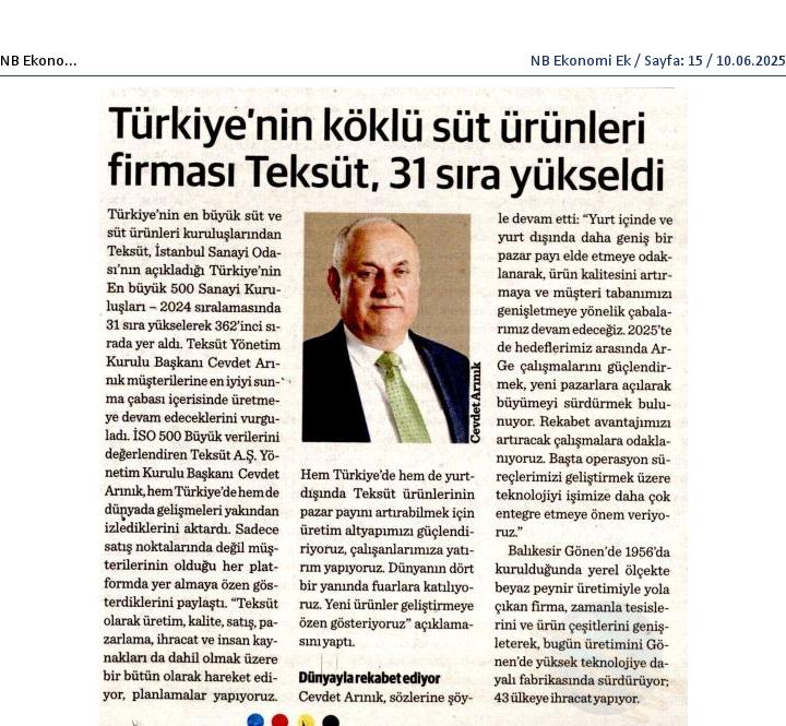 Türkiye'nin köklü süt ürünleri firması Teksüt, 31 sıra yükseldi