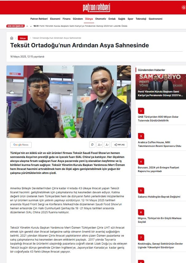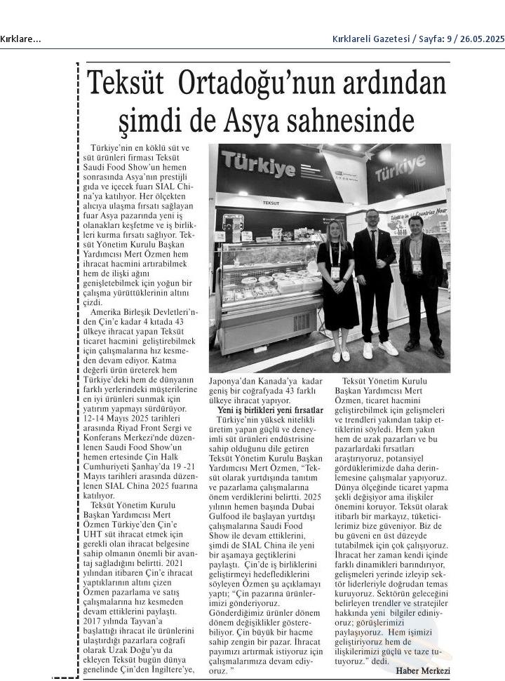 Teksüt Ortadoğu'nun ardından şimdi de Asya sahnesinde