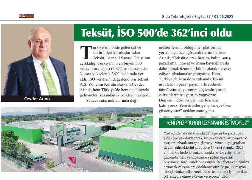 Teksüt, İSO 500'de 362'nci oldu
