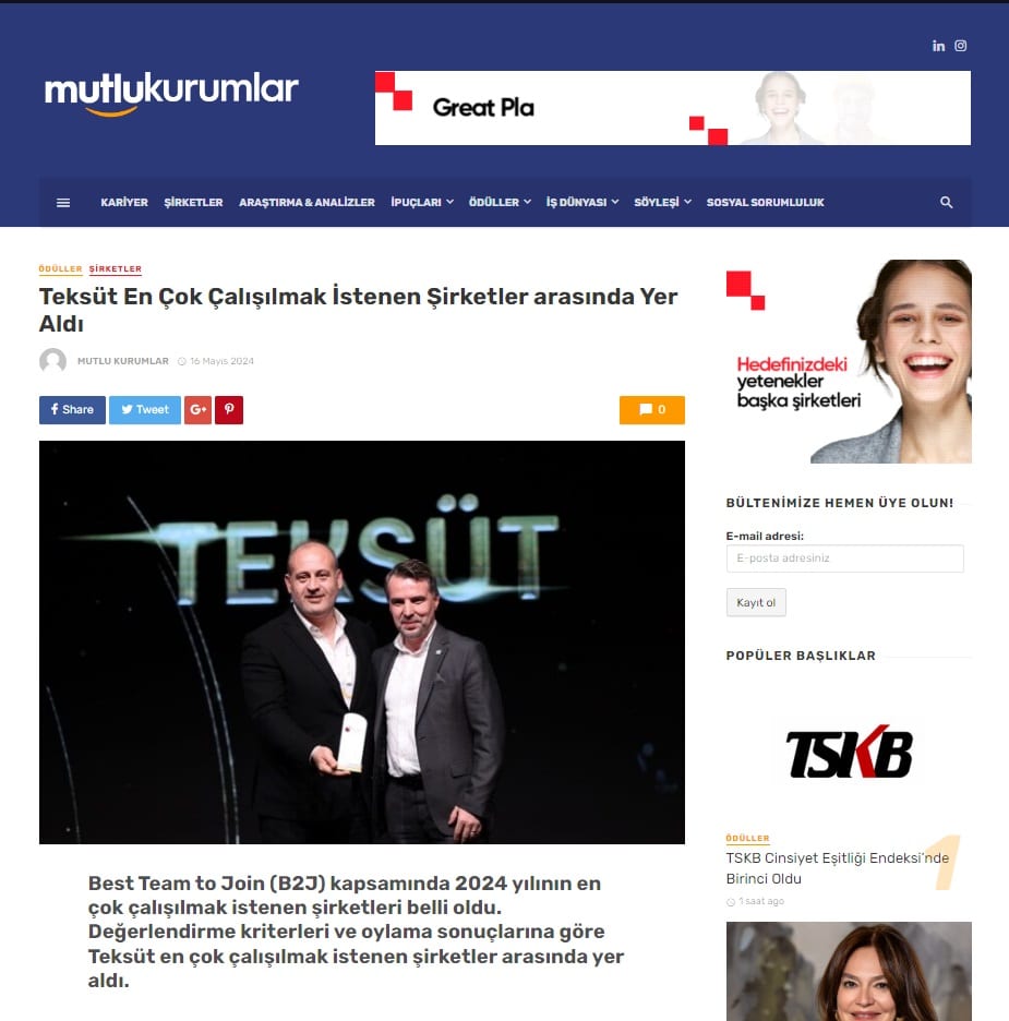 Teksüt en çok çalışılmak istenen şirketler arasında yer aldı