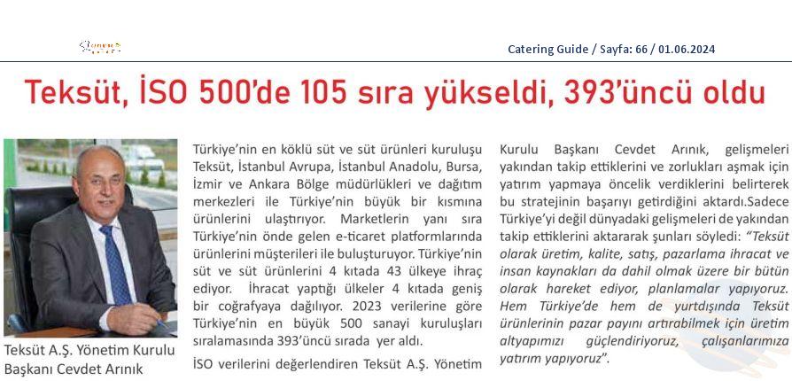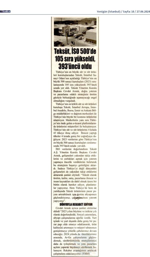 Teksüt, İSO 500'de 105 sıra yükseldi, 393'üncü oldu