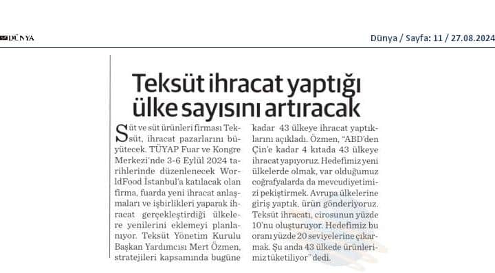 Teksüt ihracat yaptığı ülke sayısını artıracak