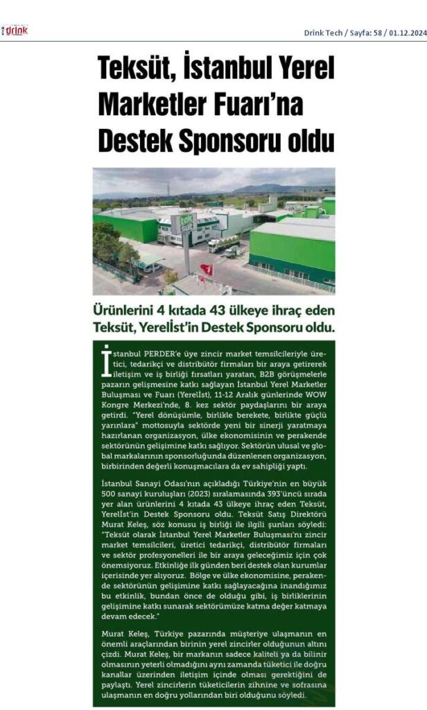 Teksüt, İstanbul Yerel Marketler Fuarı'na Destek Sponsoru oldu