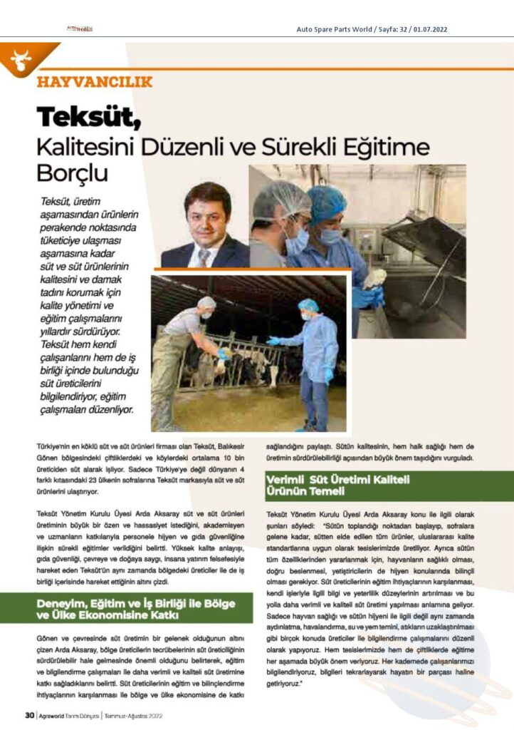 Teksüt, kalitesini düzenli ve sürekli eğitime borçlu