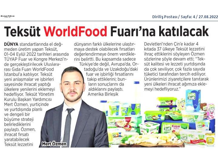 Teksüt WorldFood Fuarı'na katılacak