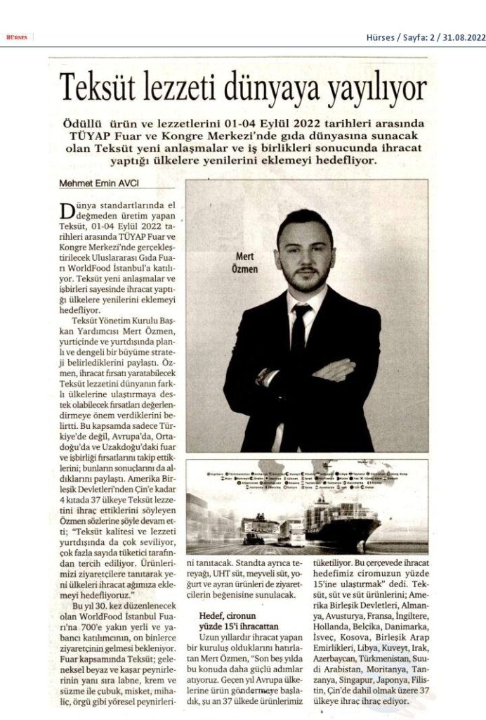 Teksüt lezzeti dünyaya yayılıyor
