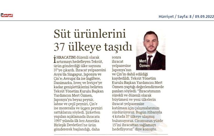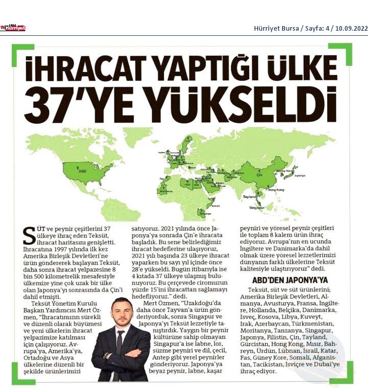 Teksüt ihracat yaptığı ülke sayısını 37'ye çıkardı
