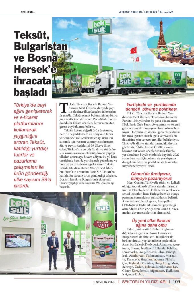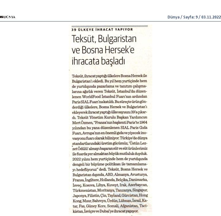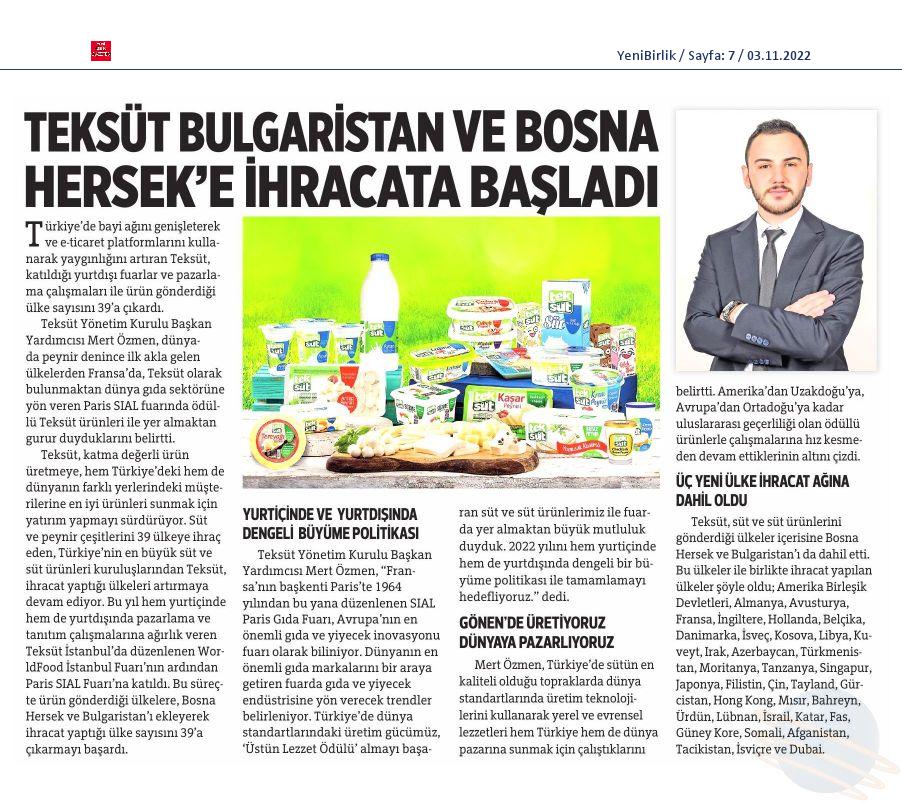 Teksüt, Bulgaristan ve Bosna Hersek'e ihracata başladı